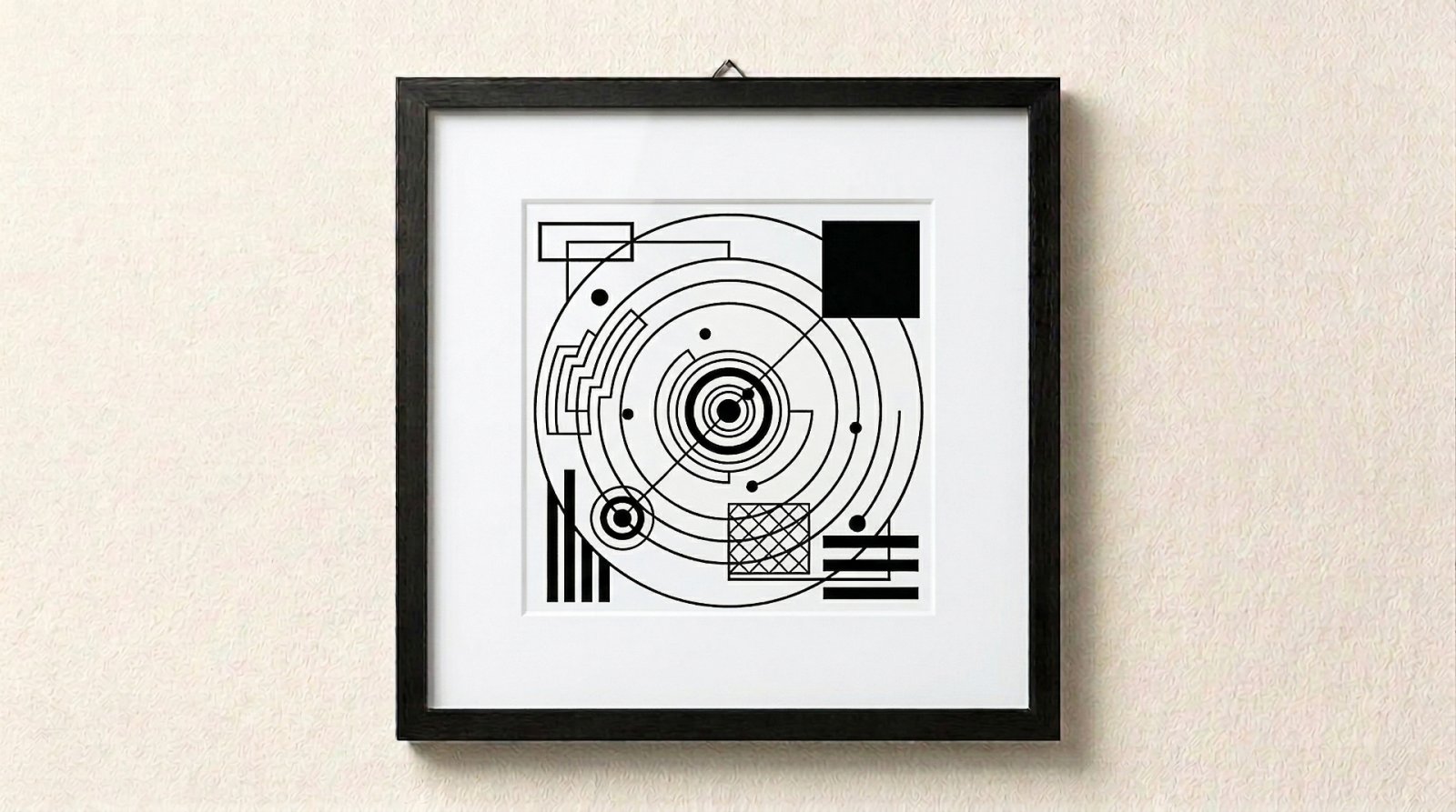 Die Komposition wird händisch im Atelier entwickelt. Dieses physische Verschieben von Elementen verleiht der geometrischen Strenge eine spürbare künstlerische Tiefe, die über rein digitale Grafik hinausgeht.