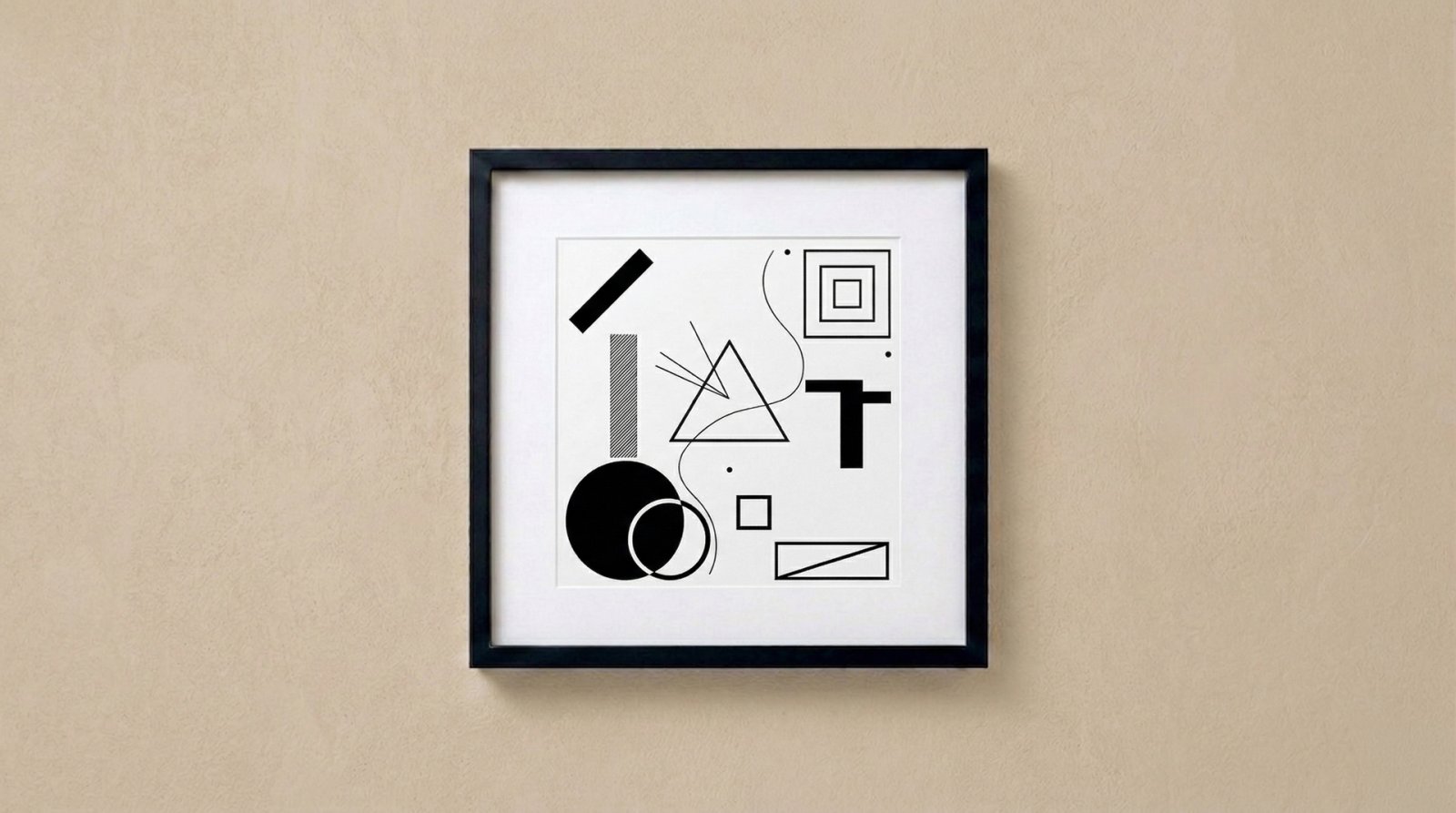Um die Minimalistik zu stützen, empfehlen wir einen extrem schmalen, mattschwarzen Rahmen (z. B. Aluminium) sowie entspiegeltes Museumsglas, damit keine Lichtreflexe die formale Stille stören.