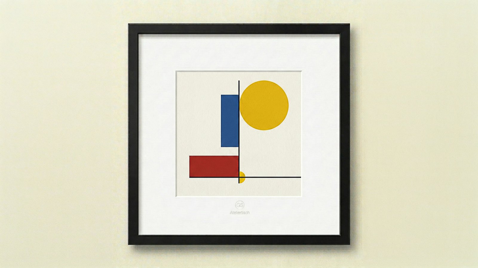 Durch das Format mit Passepartout und Rahmen eignet sich das Werk ausdrücklich als Einstieg in eine Sammlung oder als präzises, zurückhaltendes Gastgeschenk.